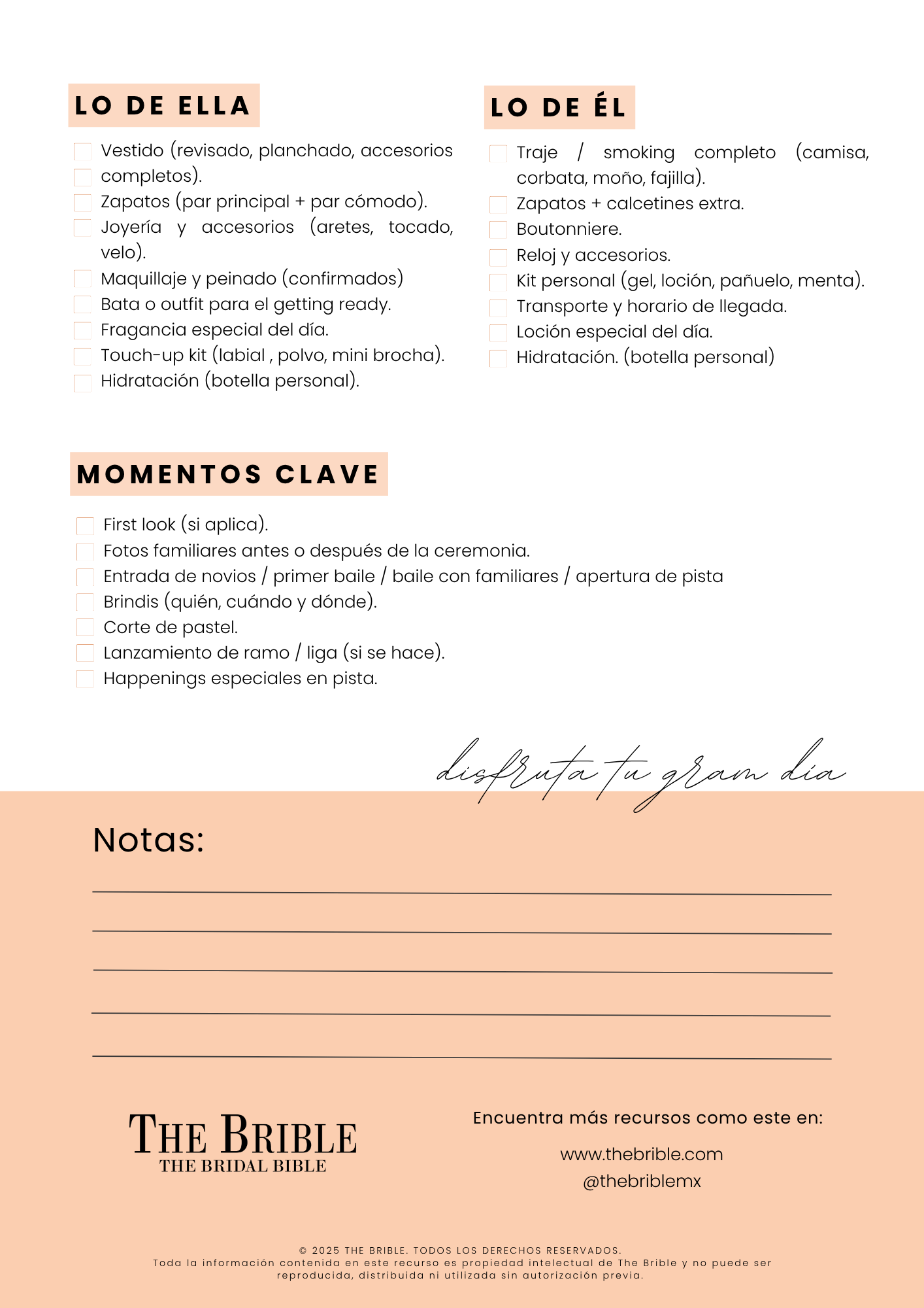 Checklist los esenciales para tu boda